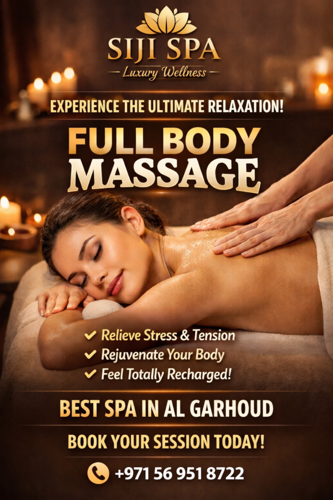 Experience deep relaxation with our full body massage in Al Garhoud, Dubai. Book your session near GGICO Metro Station today.